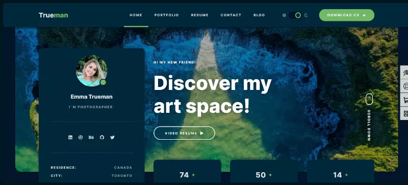 履歴書ビルダー向けの12のおすすめWordPressテーマをチェックしてみましょう。正直、かなり使いやすくてかっこいいです。スキル、キャリア経歴、ポートフォリオを簡単に魅せることができます。レイアウトはレスポンシブ対応で、カスタマイズオプションを使えば色やフォントの調整も簡単。ビジュアルページビルダーもあって、作業がとてもスムーズです。初心者でも気軽にCVやvCardサイトを作れるのが嬉しいポイント。求職者、フリーランス、雇用者に印象を与えたい人にぴったりで、プロフェッショナルな実績をしっかりと際立たせてくれます。